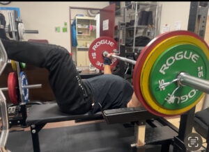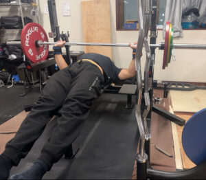 ボトムストップベンチプレス1レップRPE9、3レップ3セットRPE8~9、5レップ3セットRPE8~9