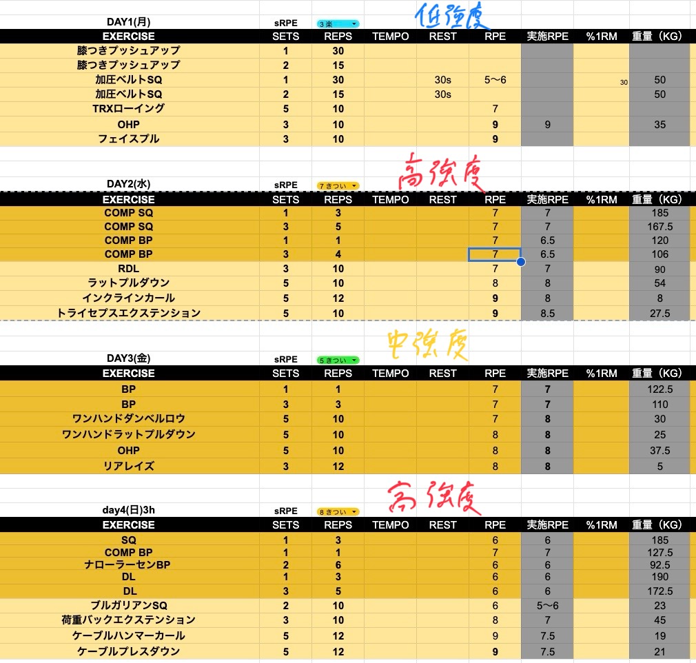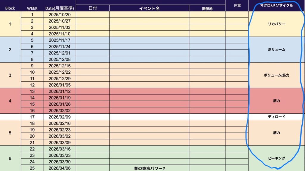 マクロ/メゾサイクルのLP(リニアピリオダイゼーション)の具体例になります。