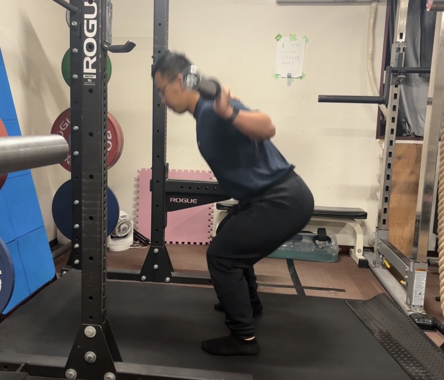 ハーフスクワットは少ない可動域の中で動作を行うため、高重量を扱いやすく、動作の速度を保ちやすいのが特徴です。