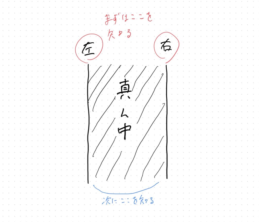 先ほど、左右のキワを知ってから真ん中を知るとお話ししましたが、じゃあ、実際どうやるの?というところを説明していこうと思います。